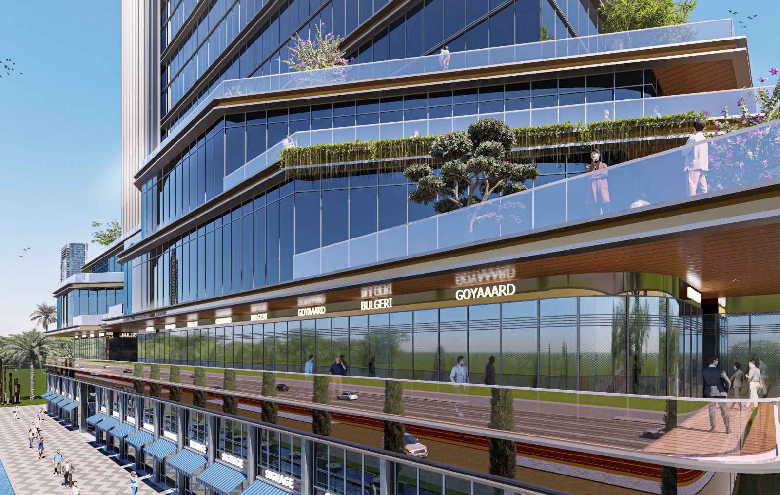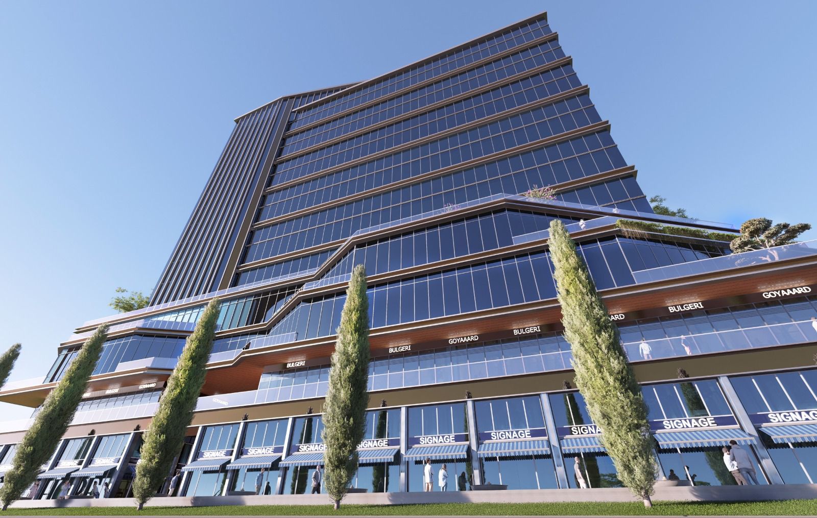 The architecture is a testament to contemporary luxury, featuring a striking façade, grand double-height entrance lobbies, and expansive floor plates designed to offer maximum flexibility for premium office spaces and high-street retail outlets.